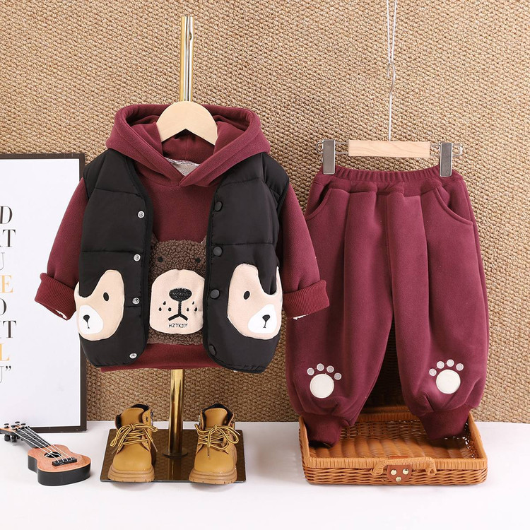 سایز 3 سال (۱۰۰): قد هودی ۴۰ ، دور سینه 72 ، قد آستین با سرشانه از کنار گردن 39 ، قد شلوار 53 ، قد پافر 40