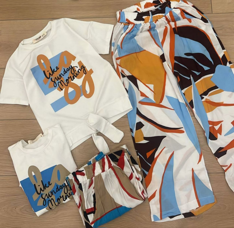 تیشرت و شلوار دخترانه ترک ، کیفیت عالی ، جنس تیشرت نخ پنبه لاکرا دار (کمی کش میاد) ، جنس شلوار نخی